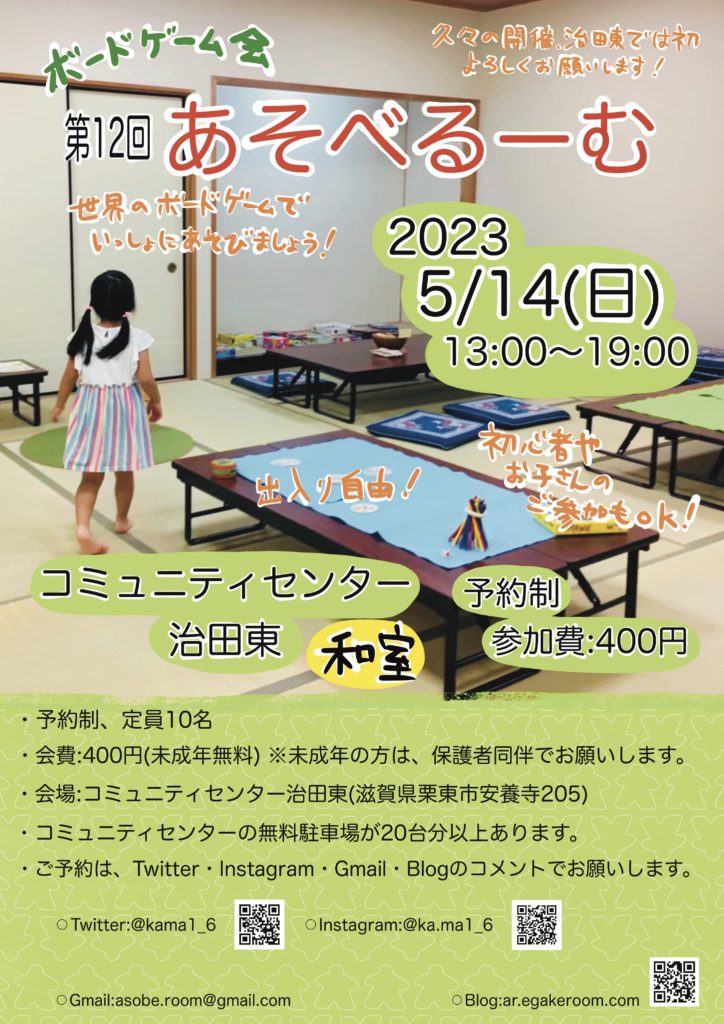 第12回ボードゲーム会「あそべるーむ」開催します(2023.5.14)