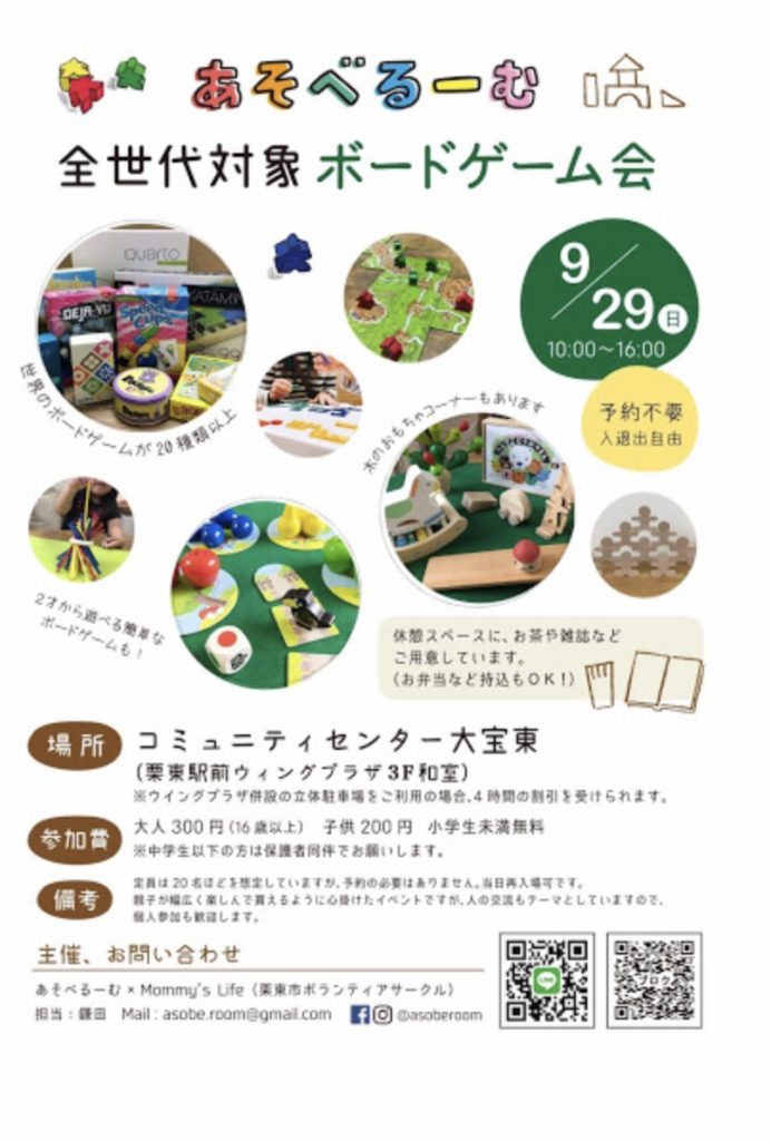 詳細はこちらでご確認下さい。https://asoberoombg.xsrv.jp/board-game-event-9-29