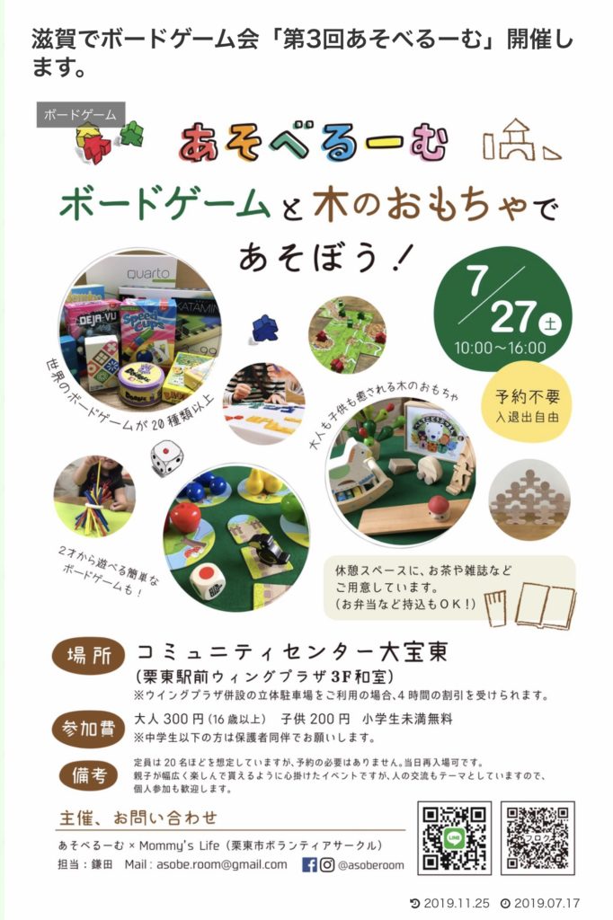 滋賀県でボードゲーム会をしています。「あそべるーむ」というサークル名で妻と二人で