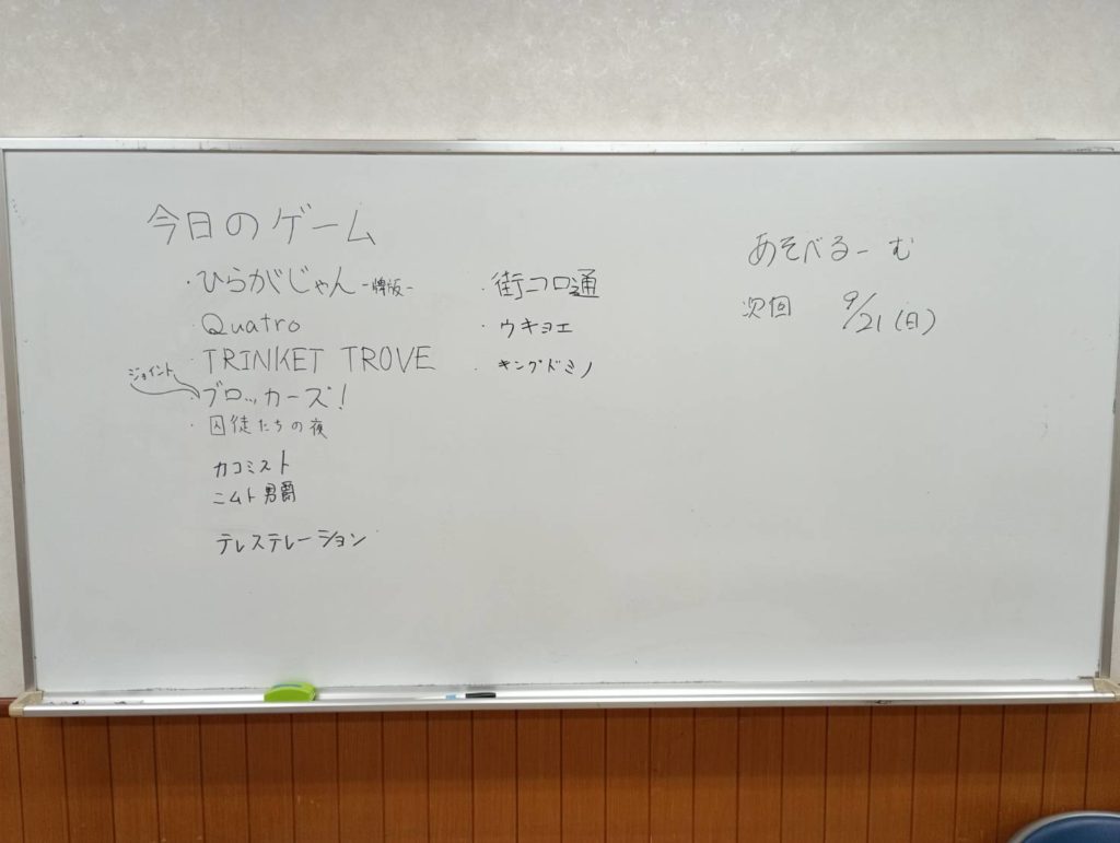 次回は9/21(日)に開催です、よろしくお願いします。